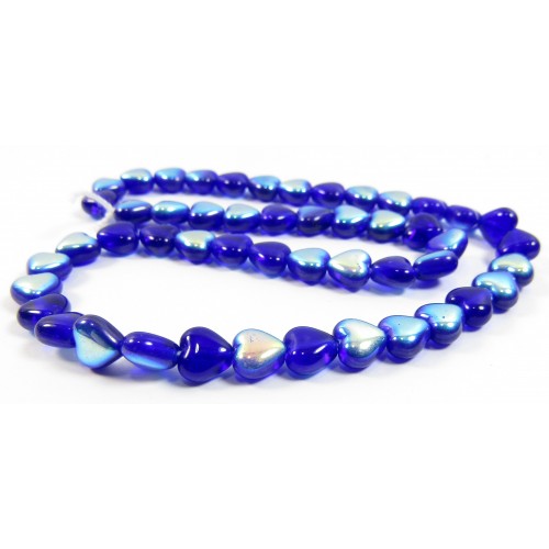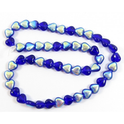 50 Czech glass 6mm heart beads - dark blue AB - dark blue one side aurora borealis coating on the other; hole top to bottom through the middle of the bead.Beadmaking in Czechoslovakia, now Czech Republic has been a traditional craft for centuries. The area known as Bohemia has given its name to the Bohemian Beads.