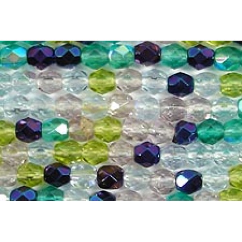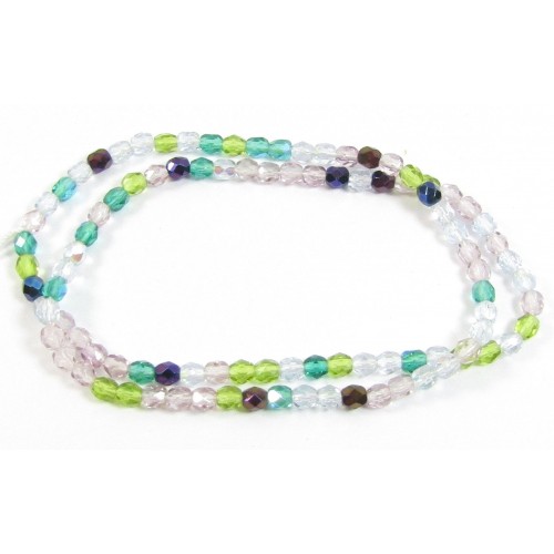 Beadmaking in Czechoslovakia, now Czech Republic has been a traditional craft for centuries. The area known as Bohemia has given its name to the Bohemian Beads. Fire polished faceted glass is made when the pressed crystals are reheating until the glass starts to melt so any sharp edges are fused smooth.CG-310, 100 Firepolish Glass Beads 4mm Spring Garden Mix