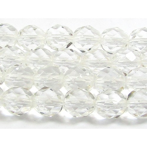 Beadmaking in Czechoslovakia, now Czech Republic has been a traditional craft for centuries. The area known as Bohemia has given its name to the Bohemian Beads. Fire polished faceted glass is made when the pressed crystals are reheating until the glass starts to melt so any sharp edges are fused smooth.CG-332, Strand Firepolish Beads 8mm Clear