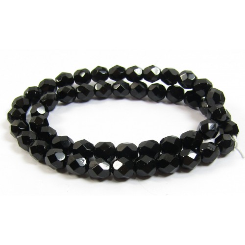 Strand Czech Glass Firepolish Crystal Beads 6mm jet. Approx 50 beads to 30cm strandBeadmaking in Czechoslovakia, now Czech Republic has been a traditional craft for centuries. The area known as Bohemia has given its name to the Bohemian Beads.