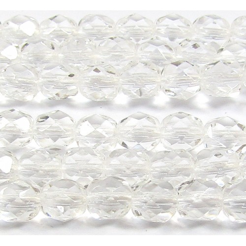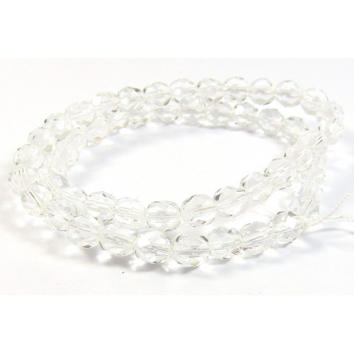 Beadmaking in Czechoslovakia, now Czech Republic has been a traditional craft for centuries. The area known as Bohemia has given its name to the Bohemian Beads. Fire polished faceted glass is made when the pressed crystals are reheating until the glass starts to melt so any sharp edges are fused smooth.CG-337, Strand Firepolish Beads 6mm Clear