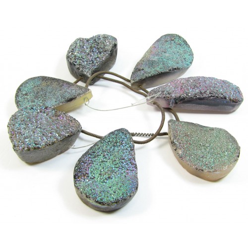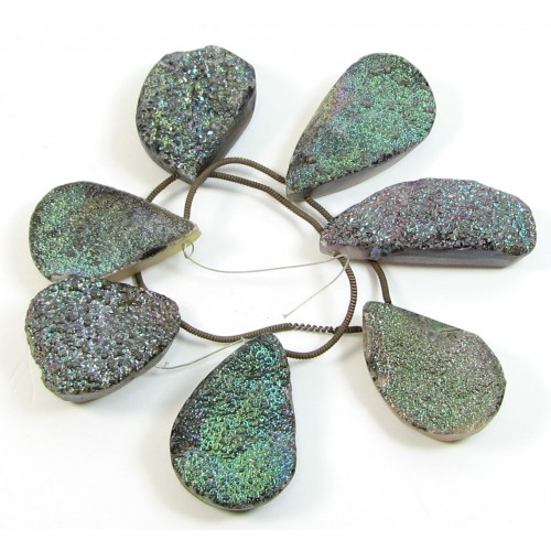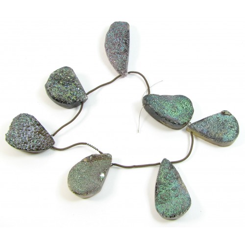 1 Short Strand Natural Undyed Drusy Quartz Beads short strand of 7 drops which measure approx. 27x21mm (some smaller or larger) hole at the top for stringing. Gorgeous.