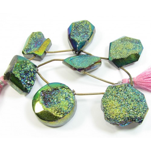 1 Strand Titanium Drusy Quartz Beads strand of 7 pendant sized through drilled beads largest measures approx. 25 x 25 mm smallest approx. 20 x 19 mm. Temporarily strung ready to use in your beady creations very beautiful.