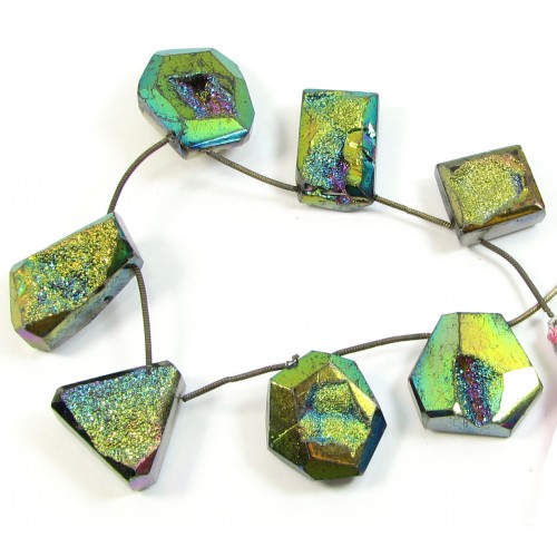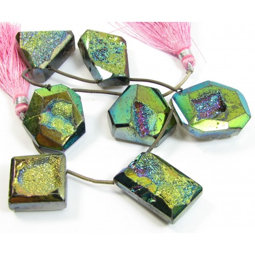 1 Strand Titanium Drusy Quartz Beads strand of 7 pendant sized through drilled beads largest measures approx. 25 x 25 mm smallest approx. 20 x 19 mm. Temporarily strung ready to use in your beady creations very beautiful.