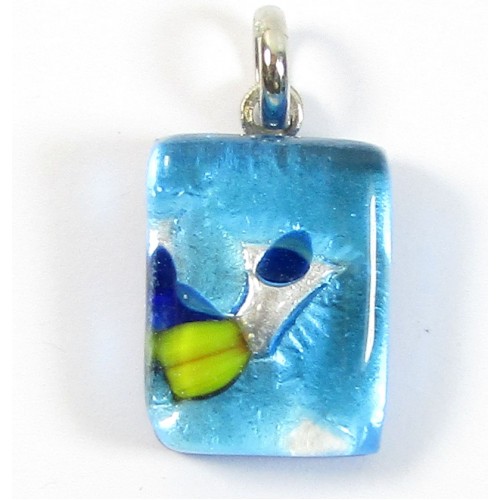 Italian Glass Pendant - Oblong - approx. 15x20mm exclusive of the hanging bail - with Made In Murano motif on the back to ensure authenticity; comes complete with certificate of authenticity. Silverfoil with blue splashes on silvertone bail.These pendants are handmade sourced from the island of Murano within the Venetian lagoon in Italy. The murano glass artisans are regarded worldwide as the masters of their art. We source the pendants direct from the makers so you can be confident all of our beads are genuine Murano glass.