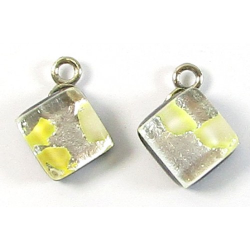 Pair Italian Glass Small Diamond Pendants, each measures approx 13mm across corners plus bail. Perfect for earrings, but pair is not an exact match as pictured. Comes complete with certificate of authenticity.These pendants are handmade sourced from the island of Murano within the Venetian lagoon in Italy. The murano glass artisans are regarded worldwide as the masters of their art. We source the pendants direct from the makers so you can be confident all of our beads are genuine Murano glass.