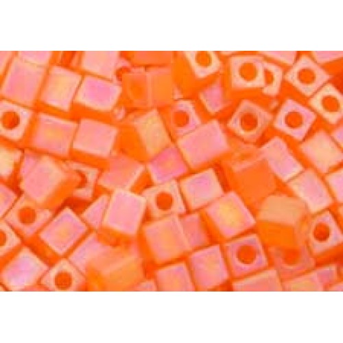 25 grammes Miyuki Cube Beads 4x4x4mm Gorgeous Matte Orange Rainbow these are bright and vibrant and quite lovely.