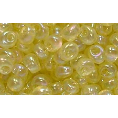 25gr Lemon AB (Aurora Borealis) Magatama Beads these measure approx. 5x4mm. These are lemon colour with an aurora borealis coating.