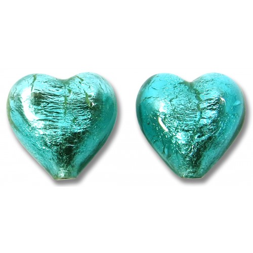 • 2 Murano Glass Verde Marino Silver Foiled 14mm Hearts