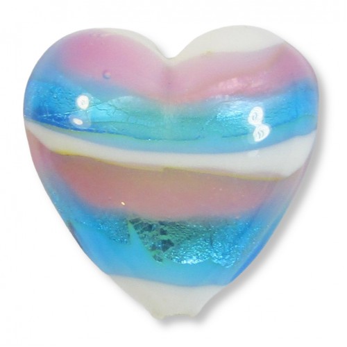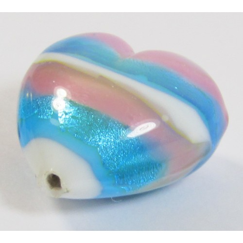 MU-892, 1 Murano Glass Caribbean Rose 20mm Heart Bead