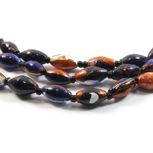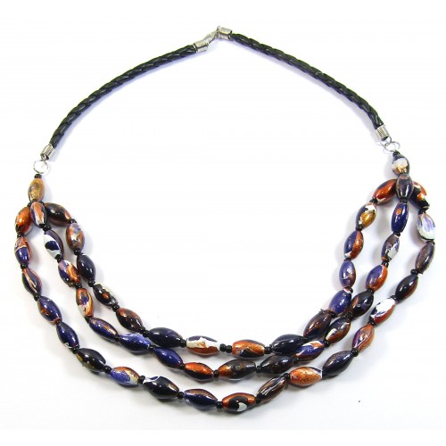 3 Strand Black Multi Wood Bead Necklace wear as is or take apart for your own creations. Pretty painted/marbled effect wood beads measure approx. 15x10mm (some larger some smaller) on plaited woven leather thong; necklace measures approx. 23.5 inches / 59.5 cm.