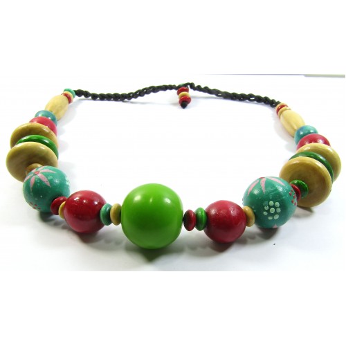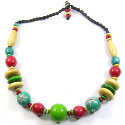 Bright Painted Wood Beads Necklace wear as is or take apart for your own creations. The largest bead measures approx. 30 mm; the necklace measures approx. 27 inches / 68.5 cm.