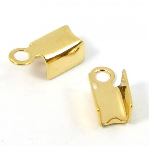 10 Gold Plated fold over crimp cord ends. Suitable for cords upto 3mm (width at base of crimp) with fold overs approx 5mm long. 1.5mm hole.