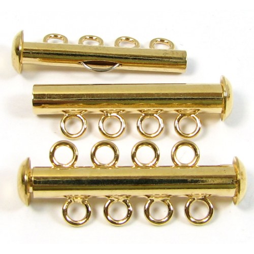 Multi Strand Clasp Gold Plated - 4 Strand. The two parts silde apart, held closed by a spring retainer. Measures approx 24mm