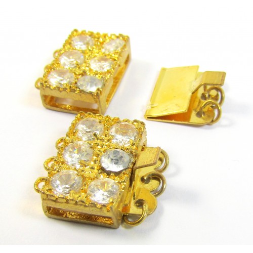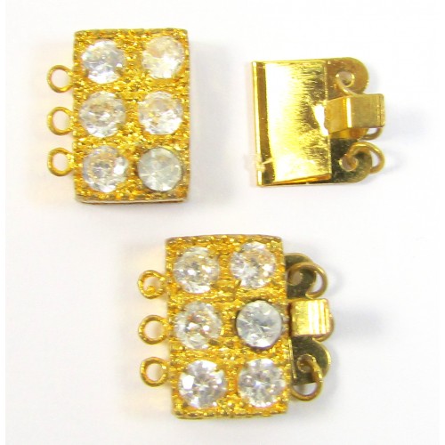 1 Goldtone Crystal Set 3-Strand Box Clasp - a very pretty little clasp this measures approx. 13x14x5mm.