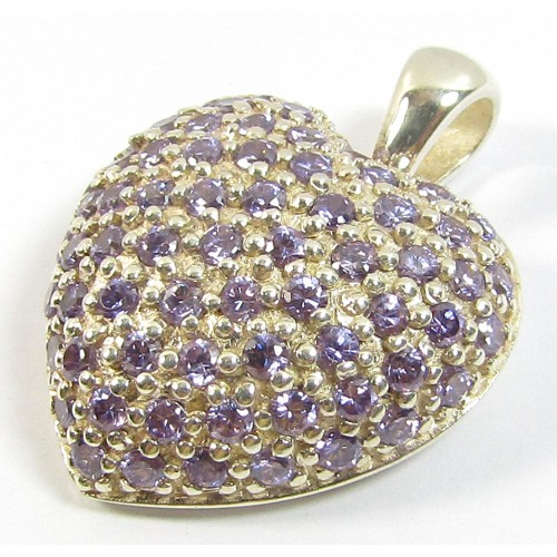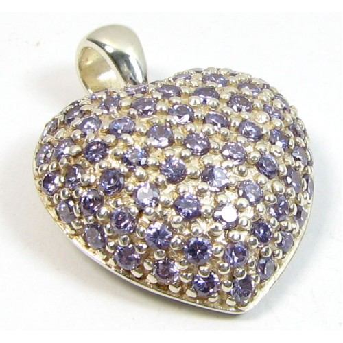 PN-391, 1 Sterling Silver and Lavender Cubic Zirconia Heart Pendant
