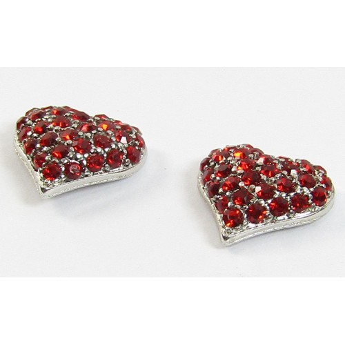 PN-527, Pair Crystal Heart Earrings - Swarovski Crystal - Siam Red