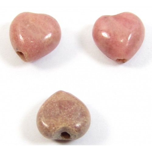 10 Rhodonite Puffed Heart BeadsRhodonite is an attractive mineral which is named after the Greek word for rose, rhodon. Its beautiful rose-pink colour is sometimes confused with rhodochrosite, but it is a distinct mineral in its own right.