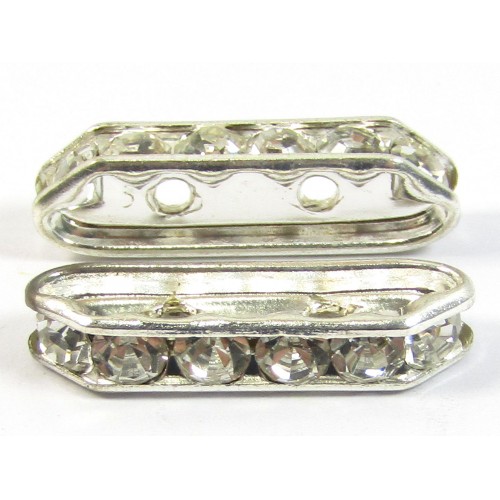 1 Silver Plated Diamante Crystal Spacer Bar 2-Row measures approx 20 x 6 x 4mm, hole centres 8.5mm