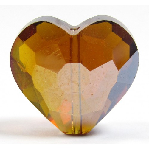 1 Copper Aurora Boreolis Crystal Facetted 18mm Heart Bead. Hole Top to Bottom