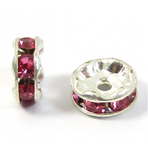 10 Silver Plated Fuchsia Crystal 6mm Rondelle Spacers