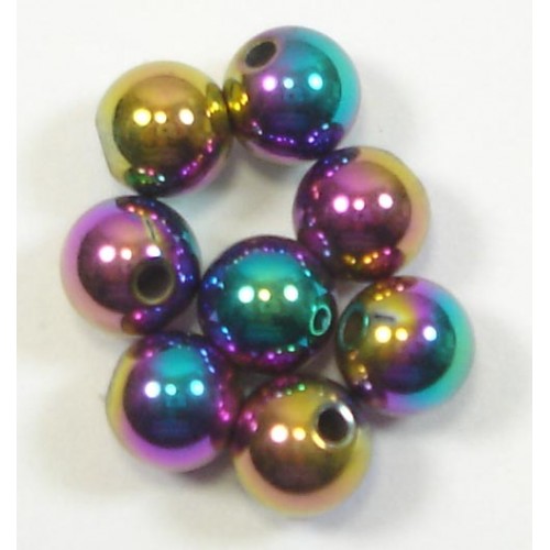 HE-34, 4 Multicolour Magnetic Hematite 6mm Round Beads