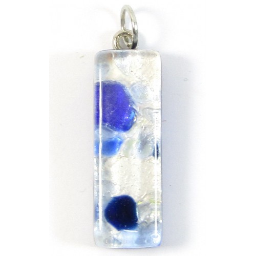 • Murano Glass Thin Oblong Pendant - Silver Foiled Blue