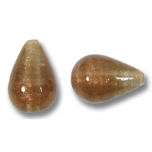 MU-1947, 2 Murano Glass Topaz Aventurine 10mm Drop Beads
