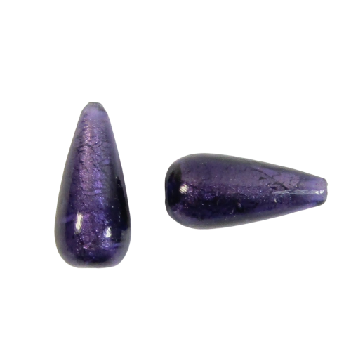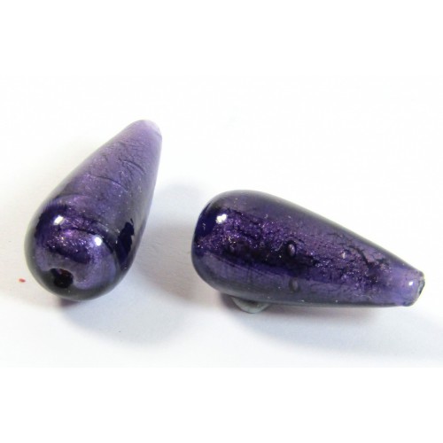 1 Murano Glass Purple Velvet White Gold Foiled Drop Bead, approx 20x10mm