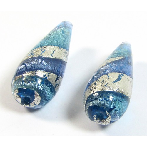 1 Murano Aquamarine and Sapphire Ripple White Gold Foiled 20mm Pear Drop