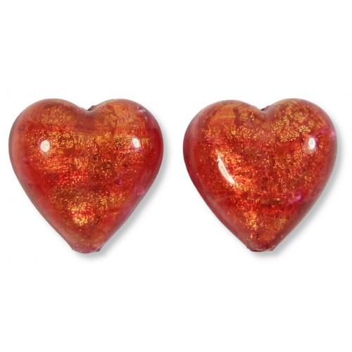 2 Murano Glass Rose Gold Foiled 14mm Heart Beads The glass core of the bead is wrapped with ..