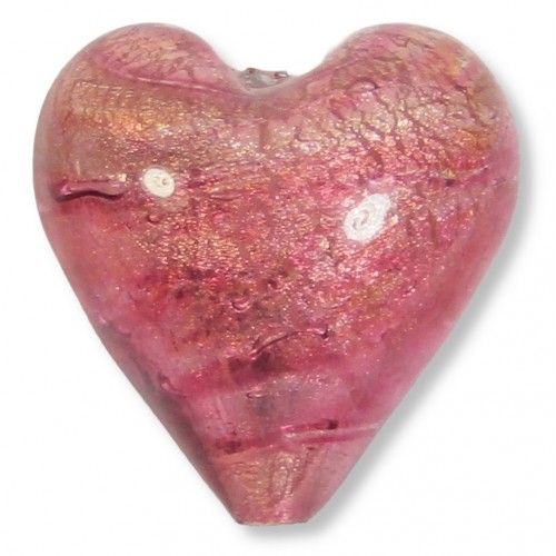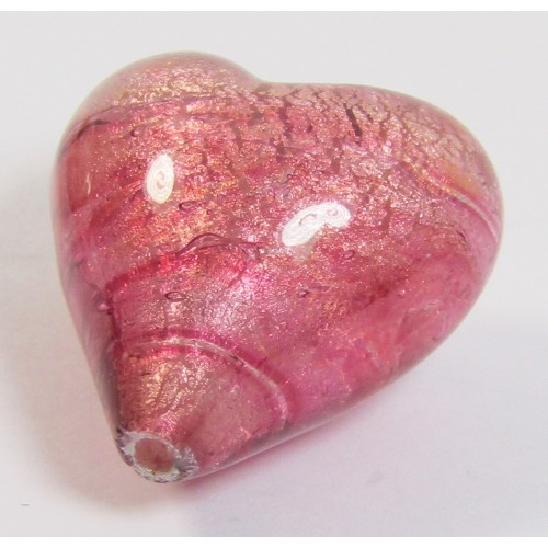 1 Murano Glass Rose Gold Foiled 20mm Heart Bead