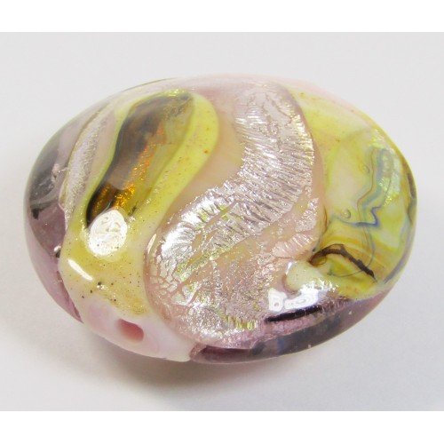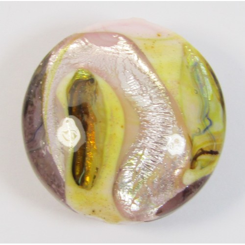 1 Murano Glass Light Rose Luna White Gold Foiled 26mm Lentil Bead. Measure approx. 26mm diameter x 12mm