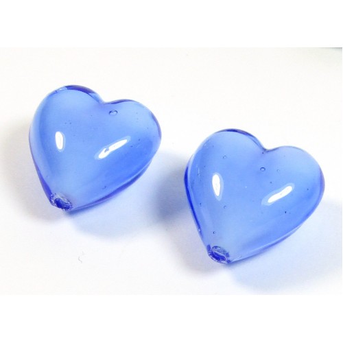 1 Pair Murano Hearts Periwinkle Blue over White Core white core refers to the colour underneath the top layer white this makes the casing colour particularly beautiful it is an old old Venetian bead making technique and these are just lovely. Measure approx. 14mm