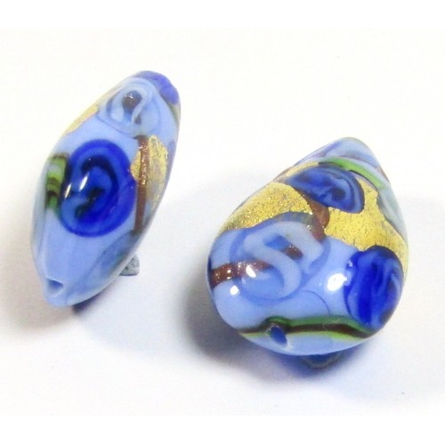 1 Murano Glass Amore Aquamarine and Sapphire Goldfoil 28mm Pear Drop
