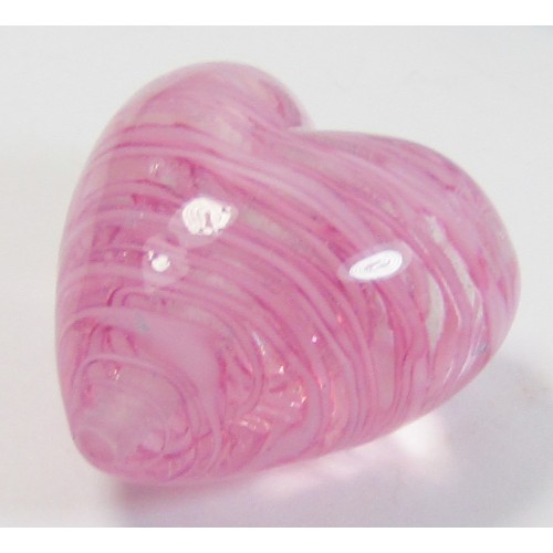 1 Murano Glass Filigrine Light Pink 20mm Heart Bead. Spirals of pink embedded within clear glass.