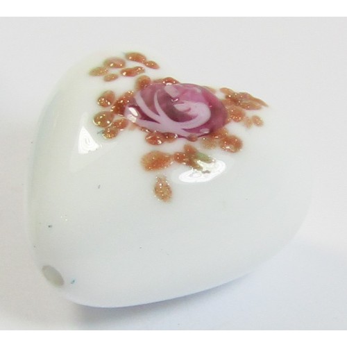 1 Murano Glass White with Aventurine & Rose Flower 20mm Heart Bead