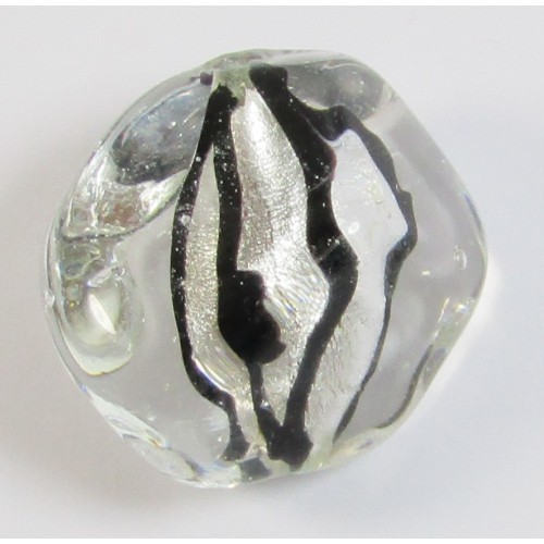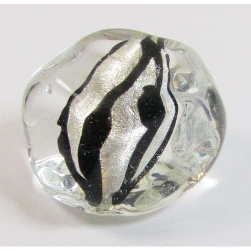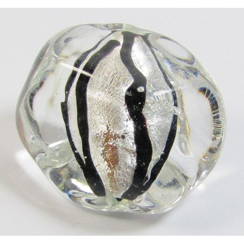 MU-2812, 1 Murano Glass Black Striped Silver Foil 25mm Focal Nugget Bead
