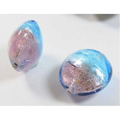 MU-2830, 1 Murano Glass Silver Foiled Bicolour 14mm Lentil Bead Mid Aqua & Light Amethyst