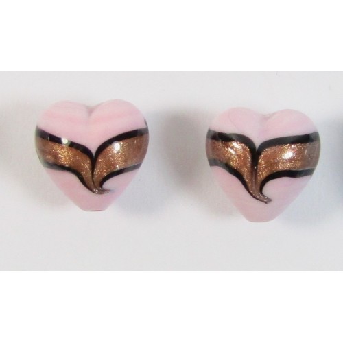 MU-2834, 2 Murano Glass Pastel Dark Pink with Aventurine Ricciola 12mm Heart Beads
