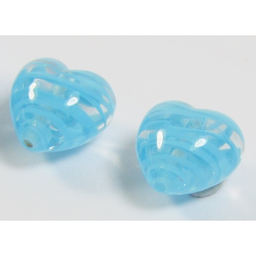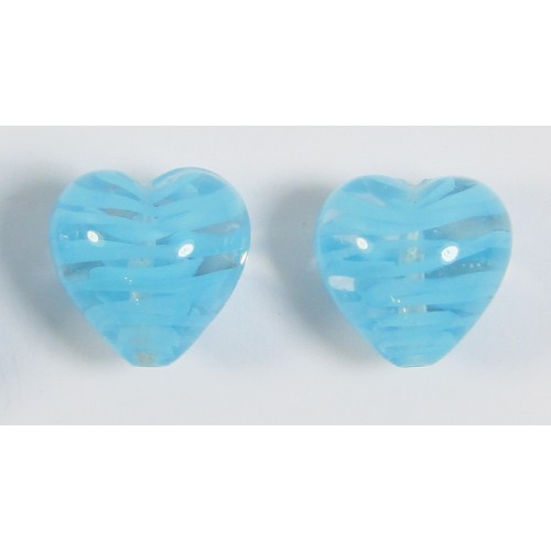 MU-2839, 2 Murano Glass Filigrine Light Blue 12mm Heart Beads