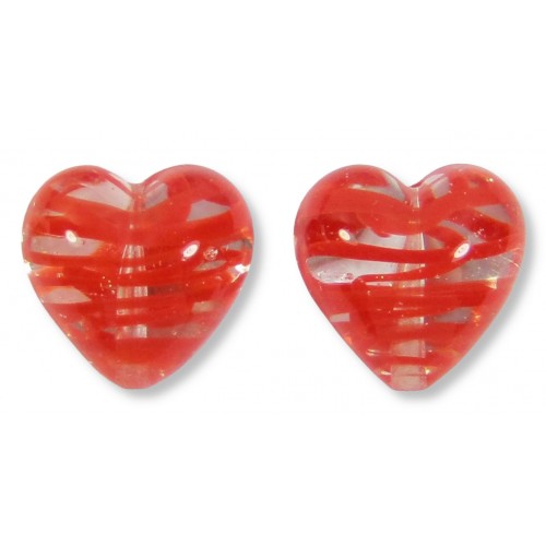 MU-2843, 2 Murano Glass Filigrine Red 12mm Heart Beads