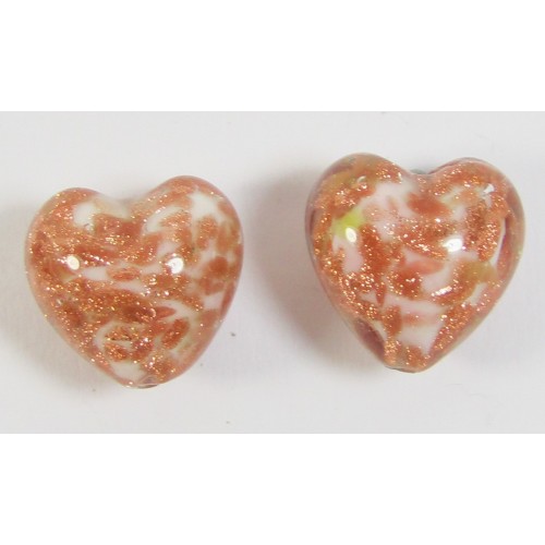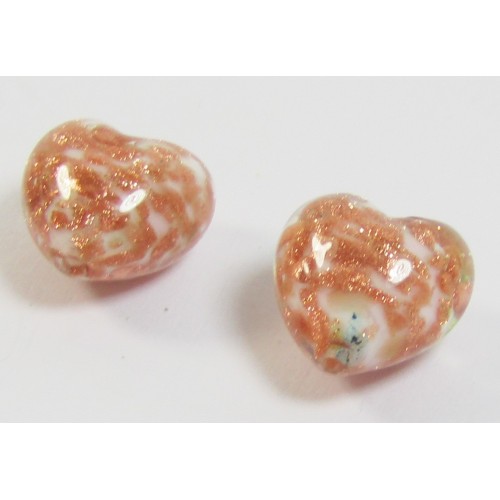 MU-2856, 2 Murano Glass Pastel Pink with Aventurine 12mm Heart Beads