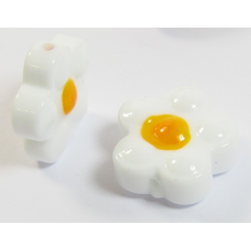 MU-2872, 1 Murano Glass White 20mm Flower Bead