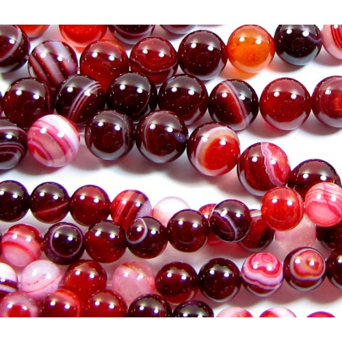 1 Strand Red Sardonyx 6mm Round Beadss; strand measures approx. 15 inches/ 38cm.Onyx is a translucent Chalcedony, part of the Quartz family, and for hundreds of years was carved to produce cameos - we have a range from black to black and white banded. Sardonyx is known as the stone of marital happiness.