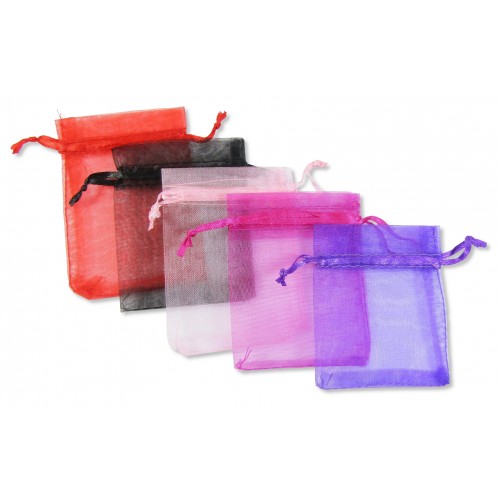 Pack of 4 Small Organza Jewellery Bags, approx 9 x 12cm. Random selection of colours from  Black, Rose Hot Pink, Amethyst and Red.