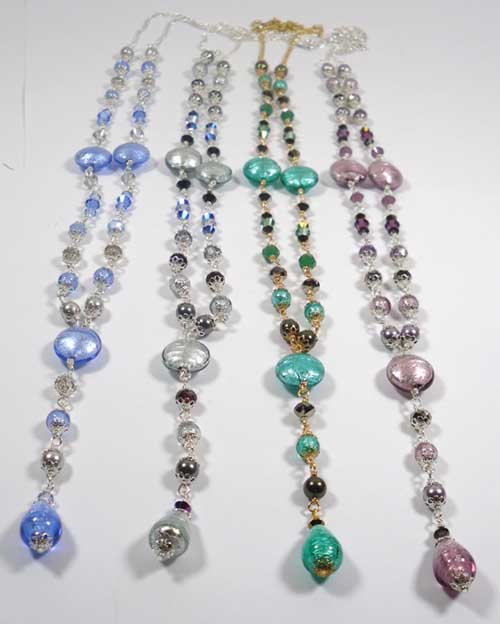 adjust to the length you want it to be. Made with silver lined Murano glass,