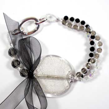 organza ribbon, crystal beads, seed beads and silvertone fittings with Beadalon