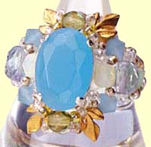 'Glass Stone and Leaf' (Colours - Blues, Greys, Green and Goldtone)';