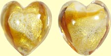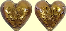 Pair Murano Goldfoil Topaz 14mm Hearts